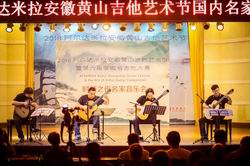 由安徽省音乐家协会、安徽省黄山市文学艺术界联合会为指导单位,安徽省音协吉他专业委员会、香港阿尔达米拉吉他艺术发展基金会为主办单位,安徽省黄山区文学艺术界联合会、安徽省黄山区总工会、安徽省“汤之韵”黄山吉他艺术中心、安徽省黄山市华律音乐文化有限公司共同承办,大连圣保罗乐器有限公司、黄山区青少年活动中心以及安徽省各地市吉他专业委员会共同协办的“阿尔达米拉”黄山吉他艺术节暨安徽省第六届吉他大赛在黄山成功举办。艺术节以“不忘初心,牢记使命,坚定文化自信” ,“不忘本来,吸收外来,面向未来”为大赛宗旨。由比赛、音乐会、大师班讲座等系列活动组成,丰富多彩,吸引了来自全省乃至全国近400位吉他选手参加,邀请了国内130多位吉他教育家、音乐家以及美国吉他演奏家MAK Grgic等中外吉他名家相聚黄山脚下相约太平湖畔参与本次吉他盛会。应安徽省音乐家协会吉他专业委员会的邀请,我会会长张勇老师赴安徽黄山市参加上述艺术节系列活动并担任吉他邀请赛评委和吉他名家音乐会表演嘉宾,与中国著名吉他演奏家、教育家华忠昌、符杰、胡建民组成的吉他名家四重奏以其完美的契合与演绎,将本次艺术节吉他名家音乐会推向高潮。在皖期间张勇老师在全程参与本届吉他艺术节暨吉他邀请赛等系列活动的同时,同来自国内外的吉他专家、学者分别就古典吉他学科建设、学术交流等方面进行了广泛深入的探讨。同时通过主办单位举办的各种方式的聚会,与参加本次活动的国内外众多吉他名家们增进彼此之间的友谊。